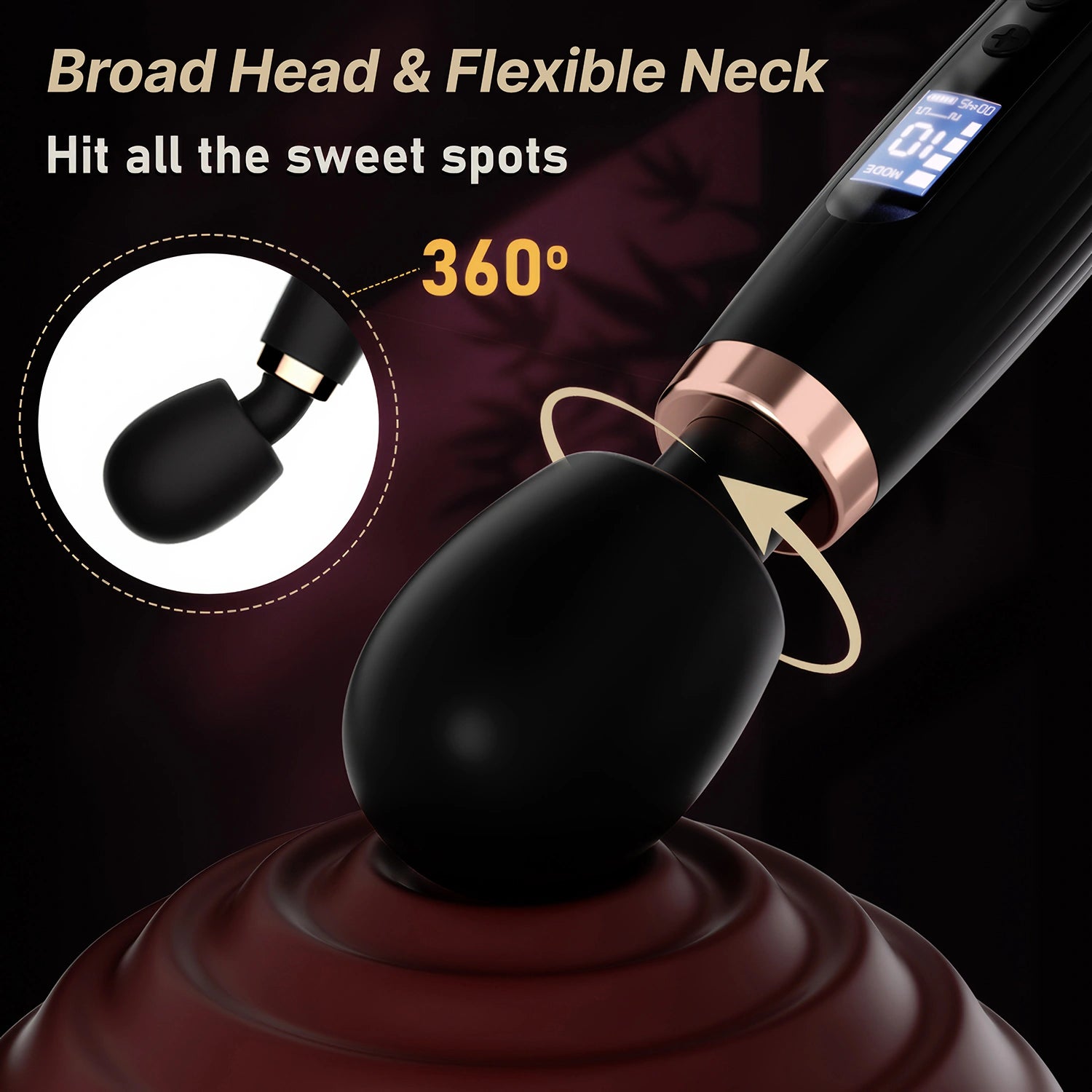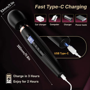 4-Speed & 10-Mode USB-C Rechargeable Wand Massager, Black (12 inch / 30 cm)