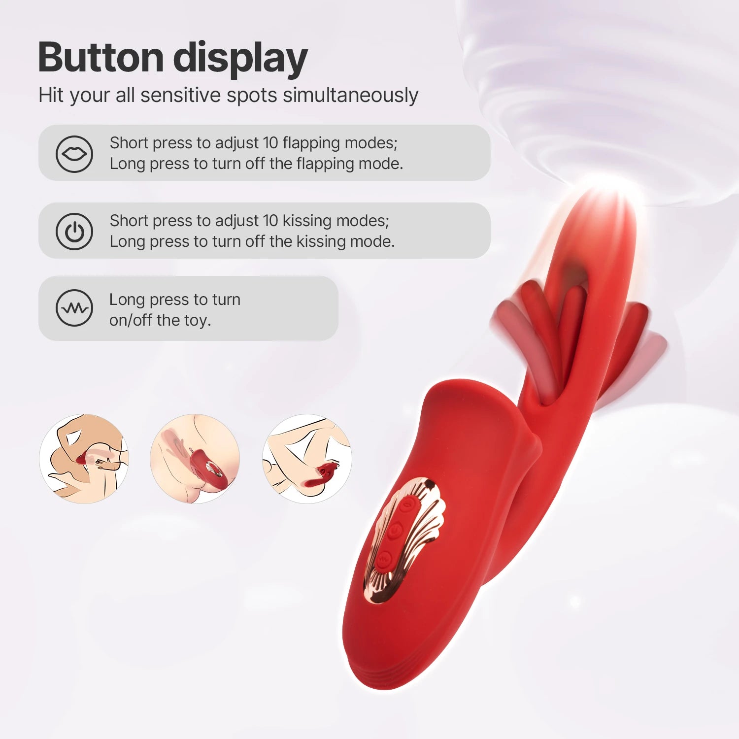 Picture the intensity of a blended orgasm, where G-spot stimulation and more come to life with 10 flapping and 10 kissing biting modes. It's as if you've found the secret to unlocking pleasure you never knew existed.
