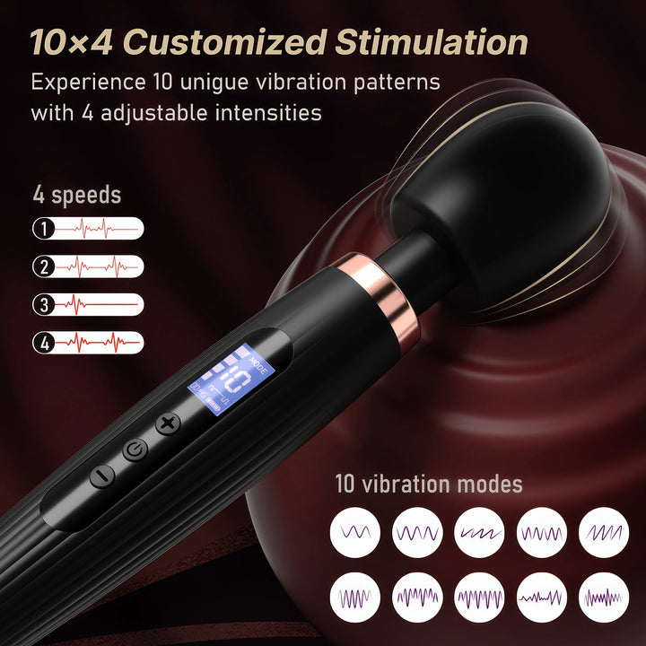4-Speed & 10-Mode USB-C Rechargeable Wand Massager, Black (12 inch / 30 cm)