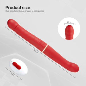 Embark on a journey of shared ecstasy with the Climax Connect, a 13-inch double-ended vibrating and thrusting dildo designed for couples seeking unparalleled pleasure.
