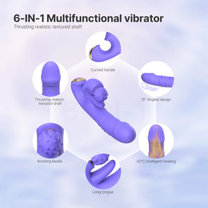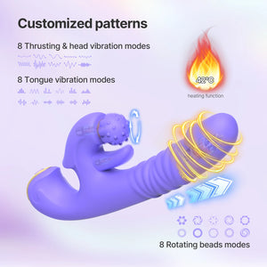 The multifunctional vibrator features a realistic dildo head, a vibrating tongue, and rotating textured balls, designed to deliver mixed orgasms and total satisfaction.