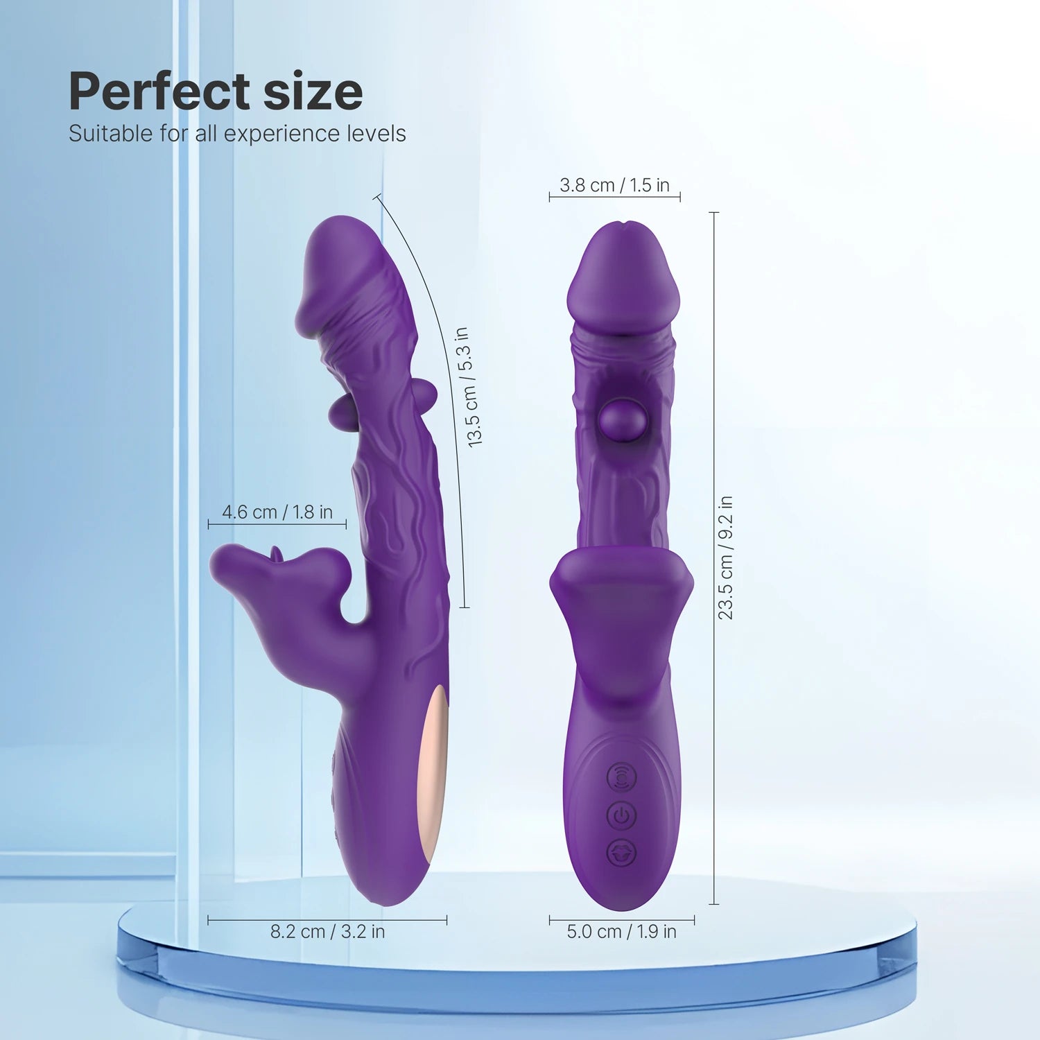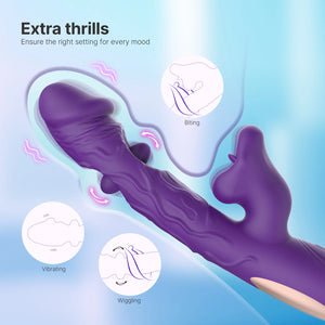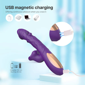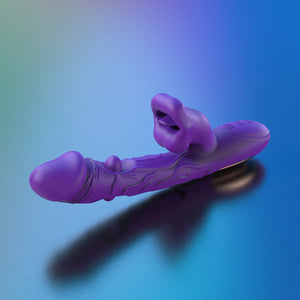 Unveiling a symphony of pleasure in a discreet, deep purple design, this vibrator is crafted with realistic detailing to give you an incredibly lifelike sensation. The shaft is adorned with intricate veins, capturing the natural texture of the penis for an authentic experience. On the upper half of the shaft, two small tongues—positioned on both the front and back—work together to rhythmically tap and stimulate the upper and lower vaginal walls, adding extra intensity to your play.