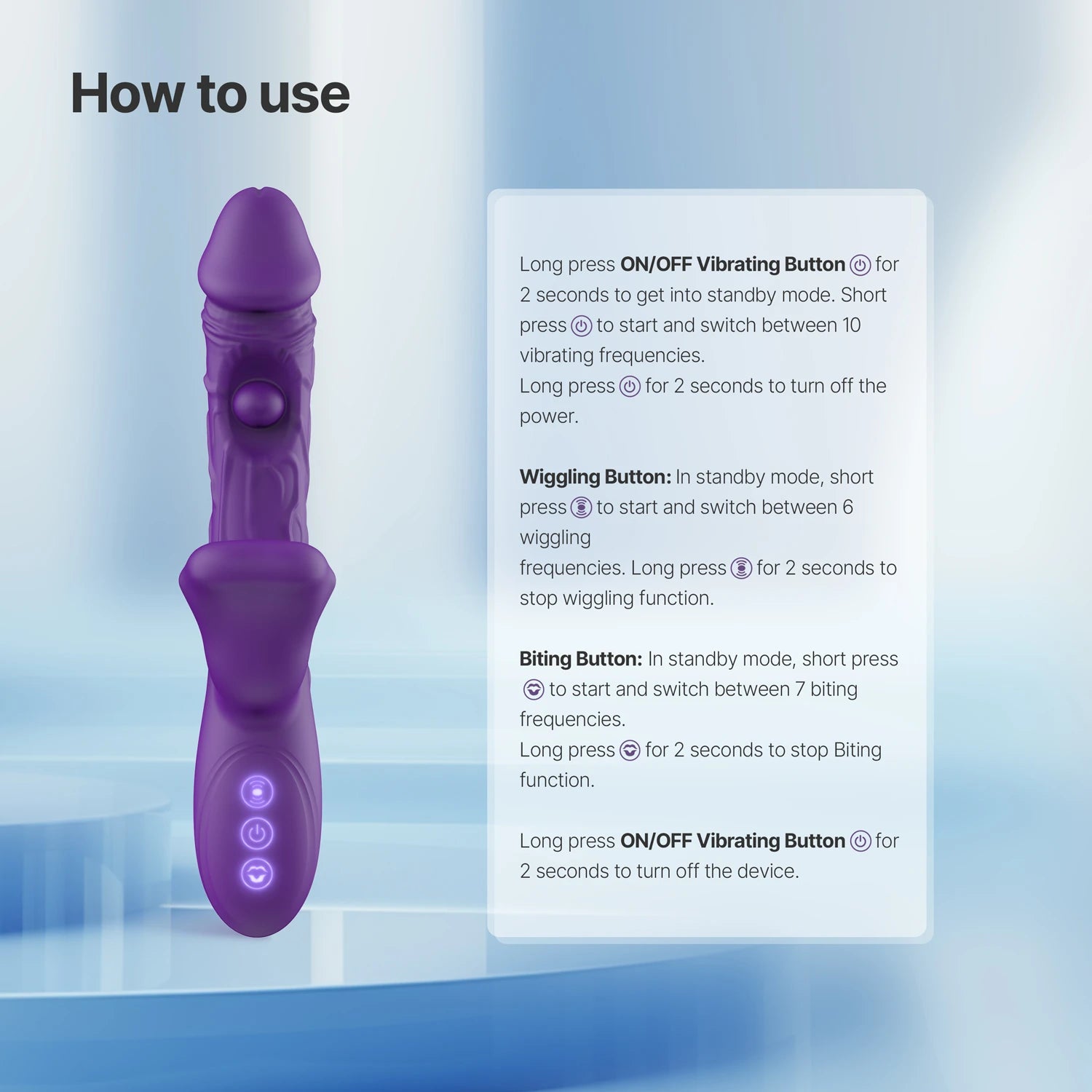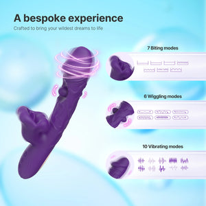 Combines shaft vibrations, tongue-wiggling motion, and mouth-like biting & tongue motions for full-body pleasure.