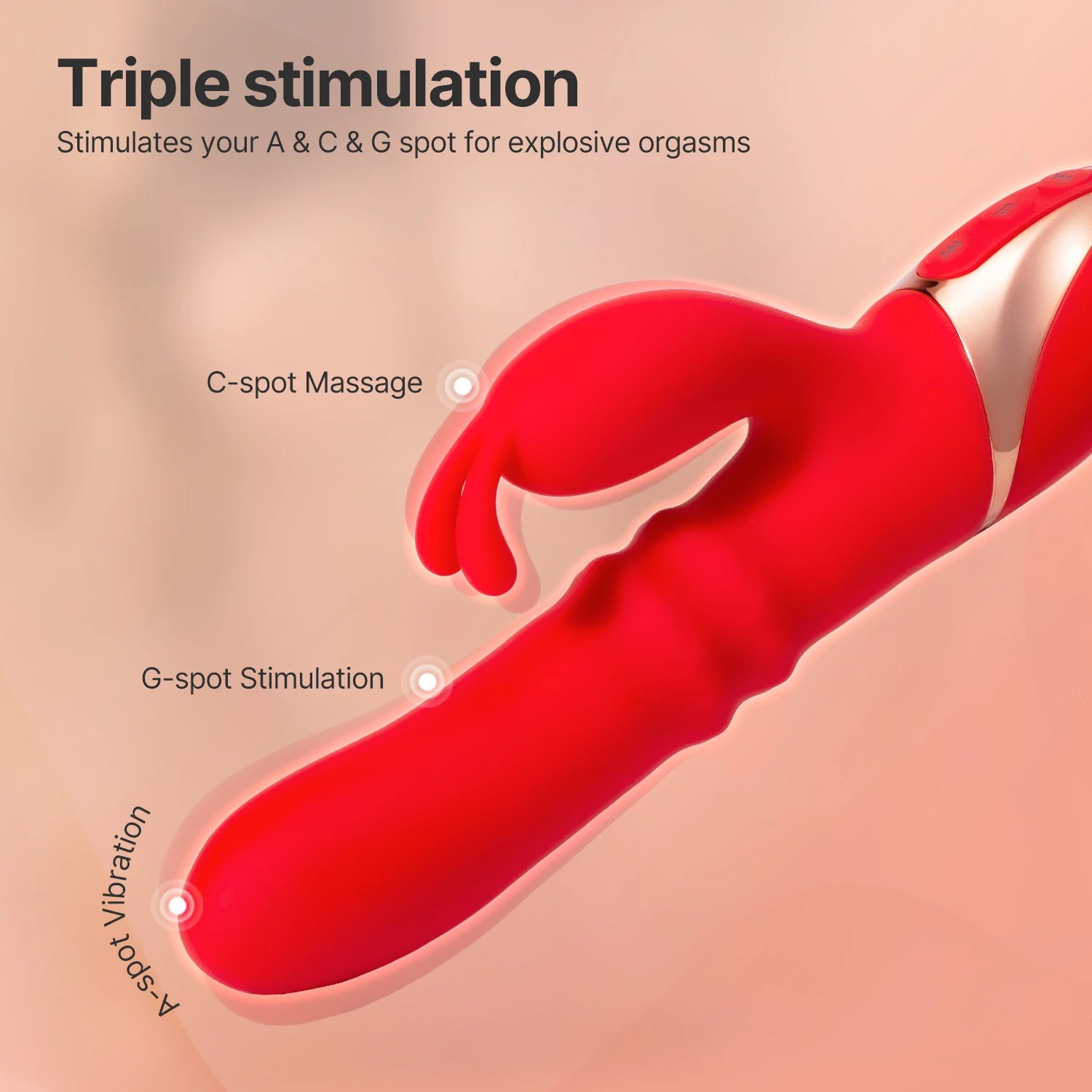 Imagine a sensual dance of rabbit ears, teasing your clit with every vibe while the main shaft explores your G-spot, setting your senses ablaze.
