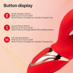 Experience the blended pleasure with clitoral tapping and beads ring sliding.
