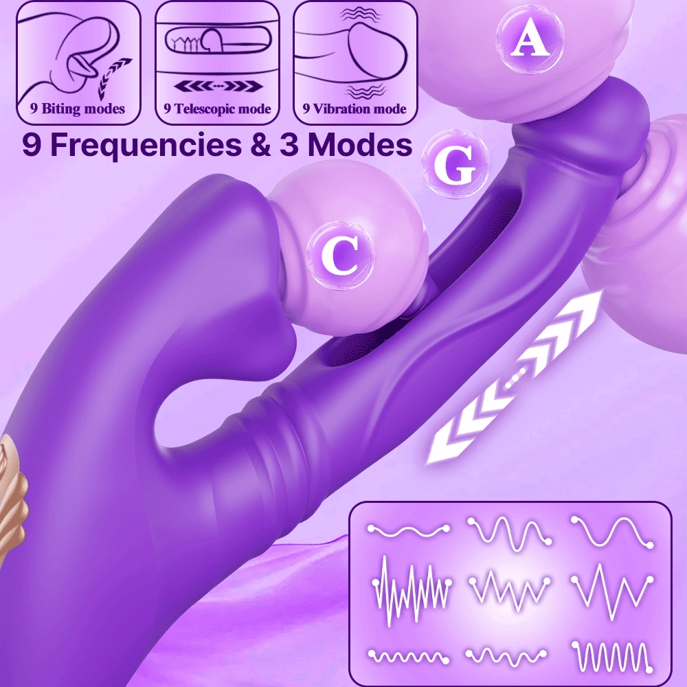 9 thrusting modes, 9 head vibration settings, and 9 oral biting rhythms for endless combinations.