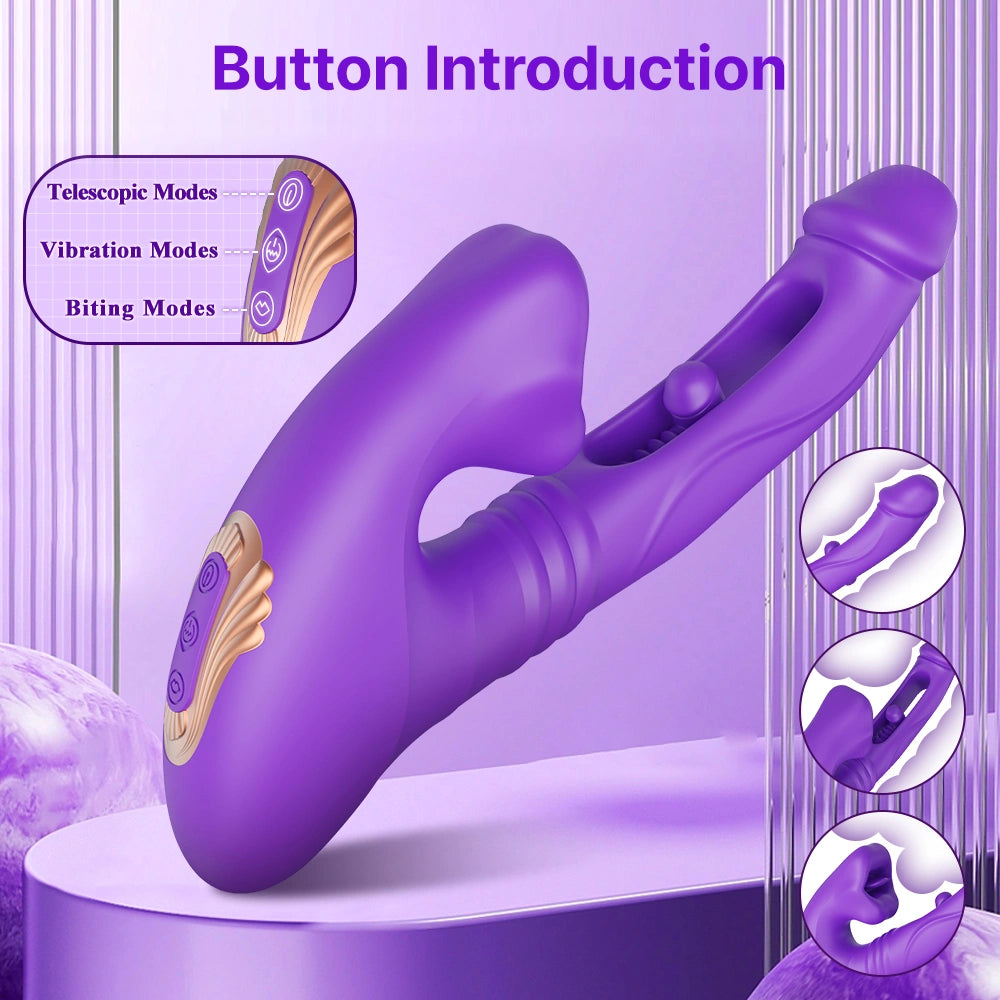Triple-Action Vibrator – 9 Modes of Thrusting, Head Vibration & Oral Biting Pleasure GnawLover