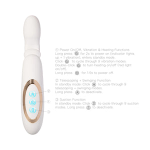 Combines vibration, telescoping thrusts, swinging motion, suction, and gentle heating for ultimate pleasure.