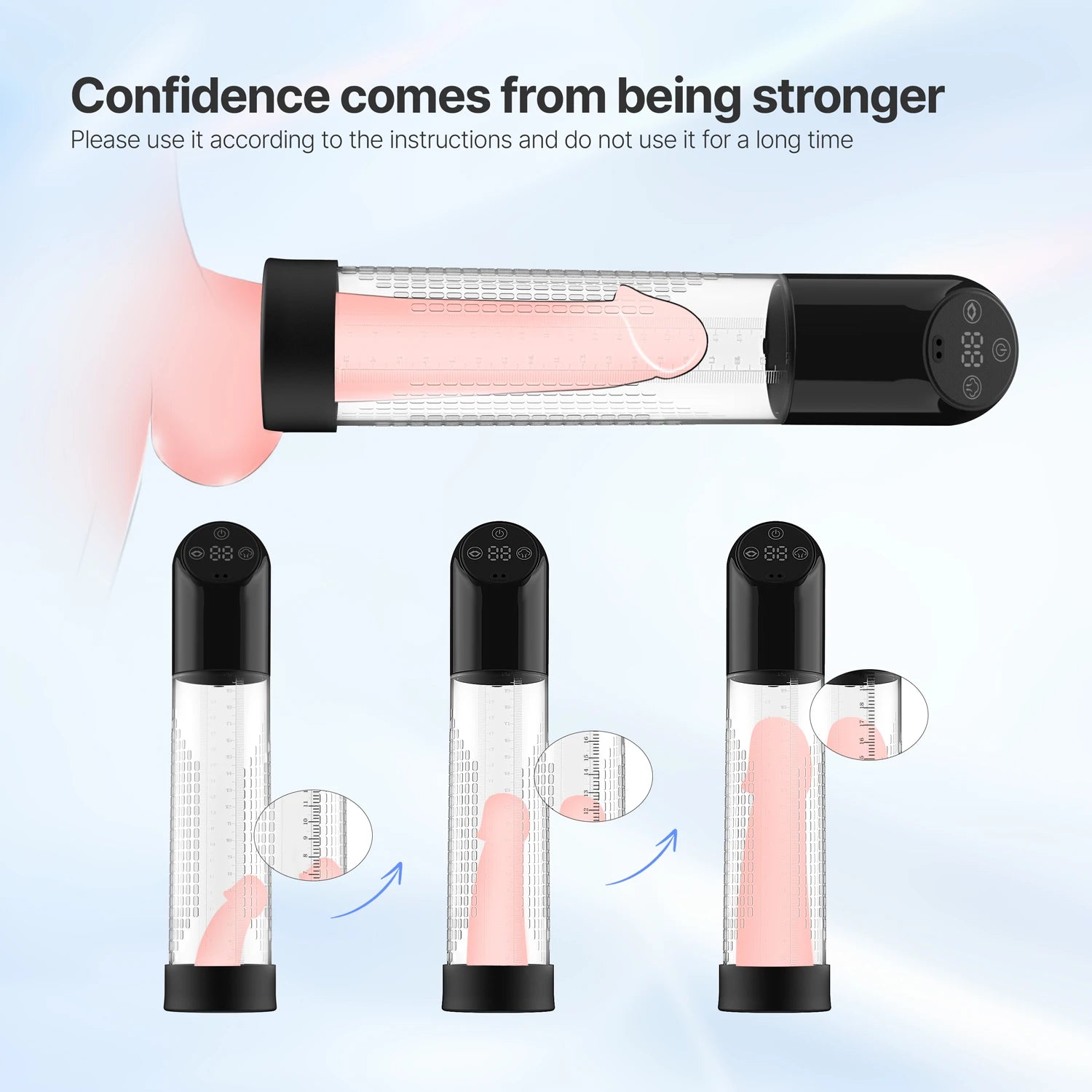 Automatic with LCD Screen: Effortlessly enhance your penis size with the push of a button and monitor your progress on the LCD screen.