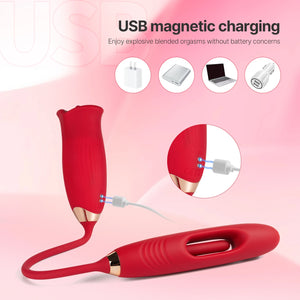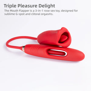 Triple Pleasure Delight: The Mouth Flapper is a 3-in-1 rose sex toy, designed for sublime G-spot and clitoral orgasms.