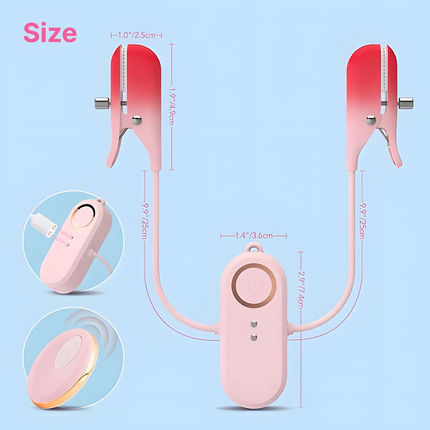 Turn up the heat and give your girls the attention they deserve with our Remote-Controlled Vibrating Nipple Clamps! With 10 vibrating modes at your fingertips, you'll experience sensations that will leave you trembling with pleasure.