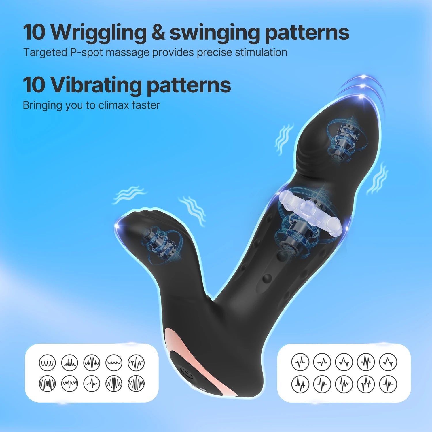 Wriggling & Swinging Motions: 10 targeted P-spot massage modes for powerful P-spot stimulation.