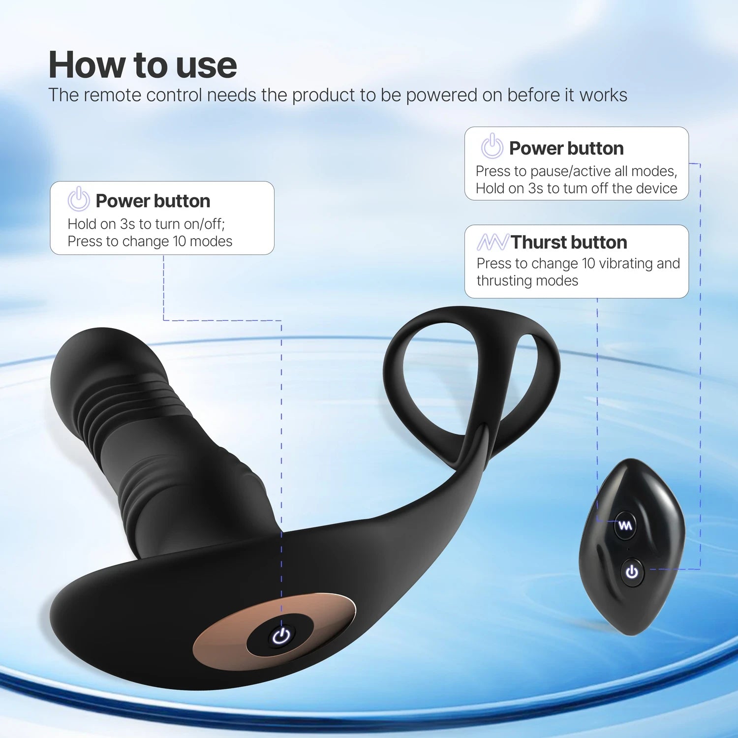 Indulge in the ultimate pleasure experience with our P-spot stroker – a remote control thrusting prostate massager with a built-in cock ring. Designed to unlock breathtaking P-spot orgasms, this unique device boasts powerful vibrations and thrusts, ensuring satisfaction beyond compare.