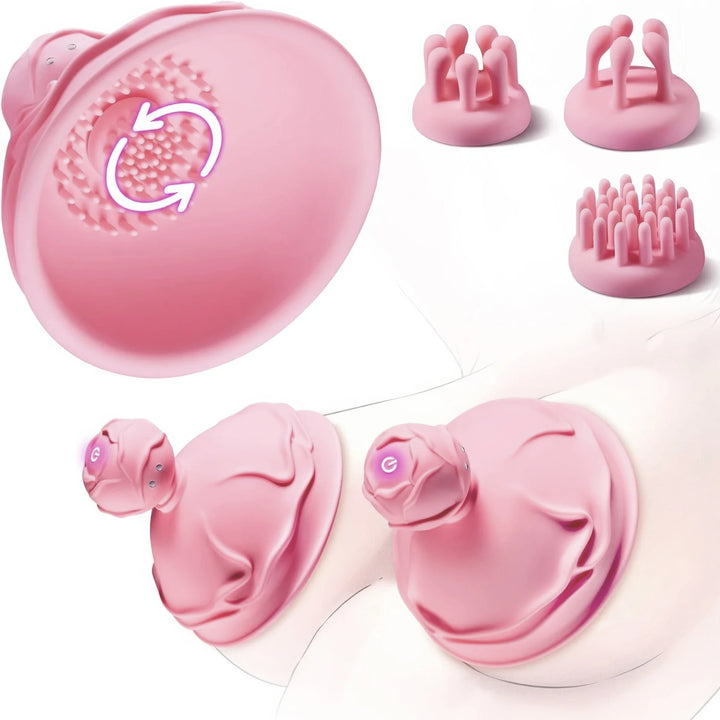 Pink Nipple & Breast Massager with 10 Vibration Modes, Waterproof Silicone, Rechargeable