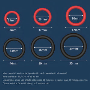 Introducing Six Ring - 6 Sizes Penis Ring Silicone Cock Rings for Men, the ultimate solution for achieving a thunder-boner that will leave you and your partner gasping for more.