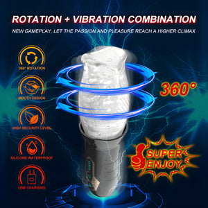 Introducing the Super Mouth - the ultimate pleasure companion for those seeking out-of-this-world quickies. Immerse yourself in an intense combo of vibrating and rotating sensations that will leave you breathless and craving more.