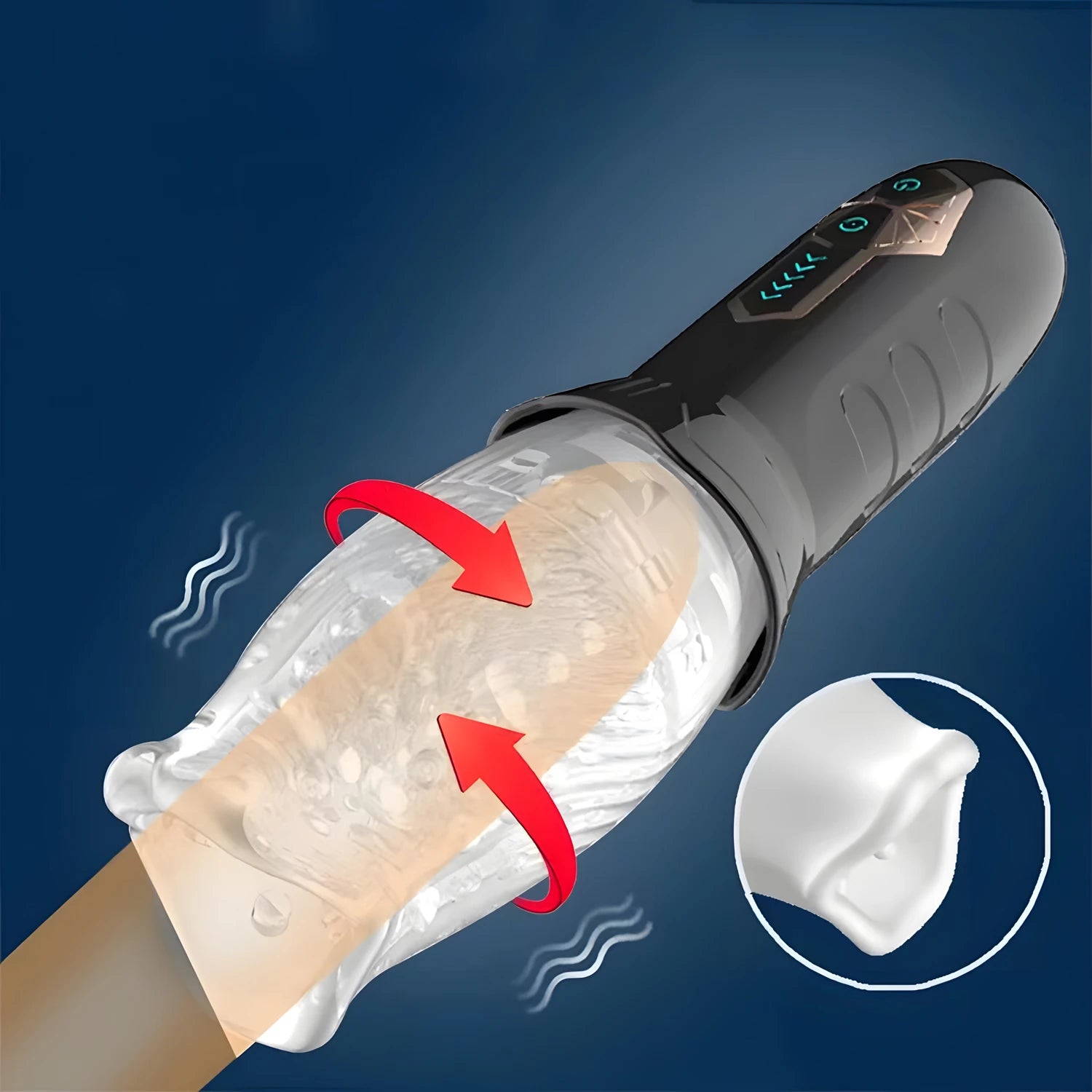 Adjustable kneadable sleeves ensure every man can find the ideal angle and pressure to please himself, while the transparent sleeve adds an exciting visual element to your playtime, allowing you to see exactly how your penis is being massaged.