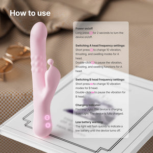 Tapping vibration glans, dildo shaft with swelling beads, clitoral stimulation ball with butterfly-shaped bump