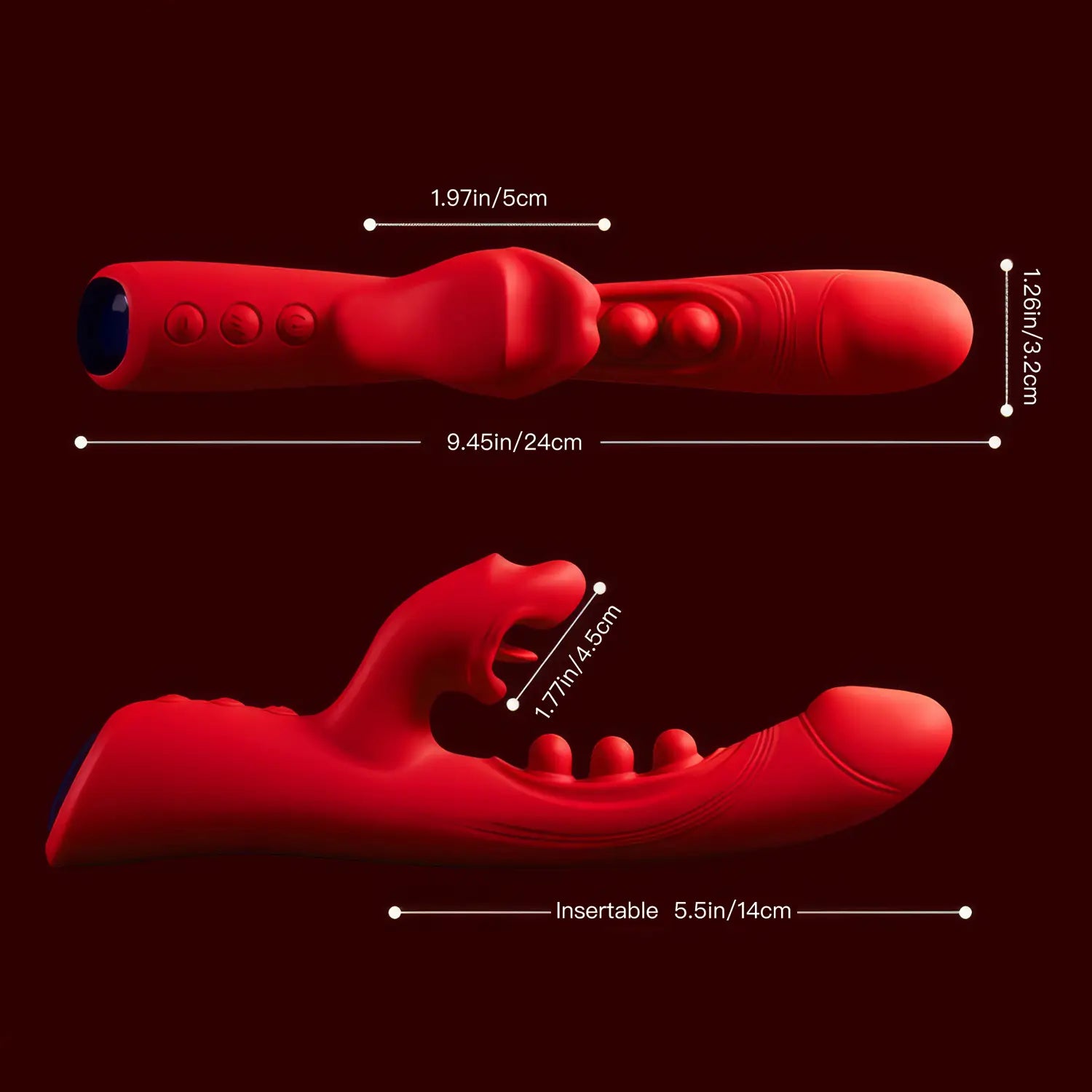 The ergonomic curve targets the G-spot with precision, while the soft tongue stimulator focuses on external sensitivity. Inside, rhythmic beads add an extra dimension of fullness and pulse, creating a deeply immersive sensation from start to finish.