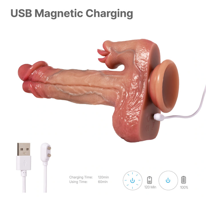 Double Dragon Dildo – Dual Shaft Realistic Vibrator with 3 Thrusting Modes, 9 Vibration Patterns, Magnetic Charging & Liquid Silicone – Adult Sex Toy for Couples and Solo Play